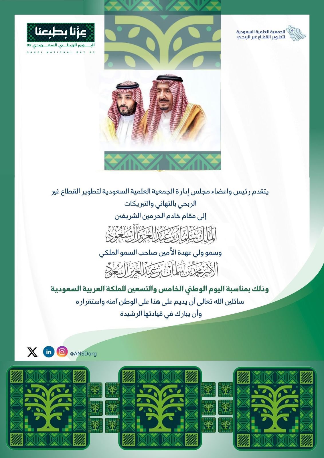 رئيس وأعضاء #الجمعية_العلمية_السعودية_لتطوير_القطاع_غير_الربحي يرفعون التهاني لمقام خادم الحرمين الشريفين